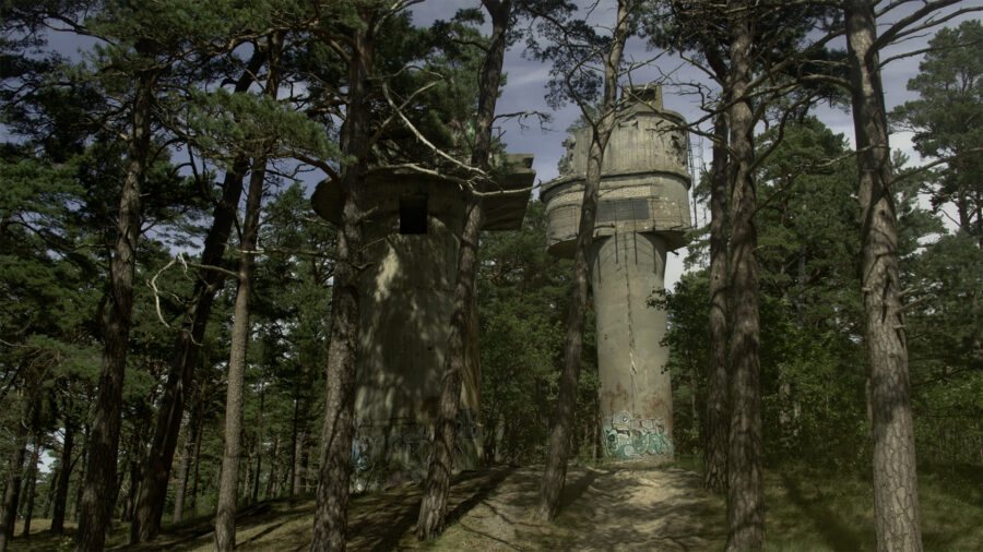 The screening evening Free Recall: Baltic Military History Architecture brings together two recent short video essays and a newly begun artistic research project by Berlin-based artist Vanessa Gravenor, current artist-in-residence at Otte 1 Künstlerhaus Eckernförde. Her video essays come out of the artist’s multi-year research into warning exercises, ideologically influenced historical advertisements, maneuvers, and hydrological rituals from the Cold War to the present. The works Free Recall (2024/25) and Cover, Duck & (2023) examine in particular how threats and militarization affect peripheral regions, with a special focus on the Baltic Sea as a space of appearance. During her residency scholarship at Otte 1, Gravenor specifically spent time researching in different archives in Schleswig-Holstein, from state archives to alternative community archives (such as Heimatgemeinschaft Eckernförde e.V.), weaving difficult knowledge from wounded landscapes with bodies of water, bodies, and inner psychic life.
